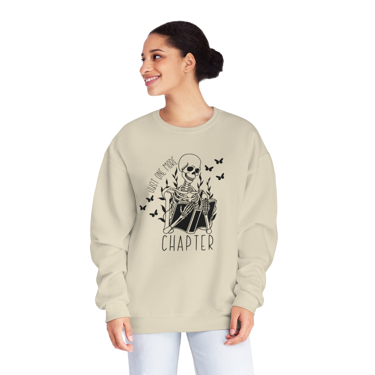 Just One More Chapter Sweatshirt, Skeleton with Book Sweatshirt, Book Lovers Sweatshirt, Gift for Book Lovers, Sweaters for Women, Reading
